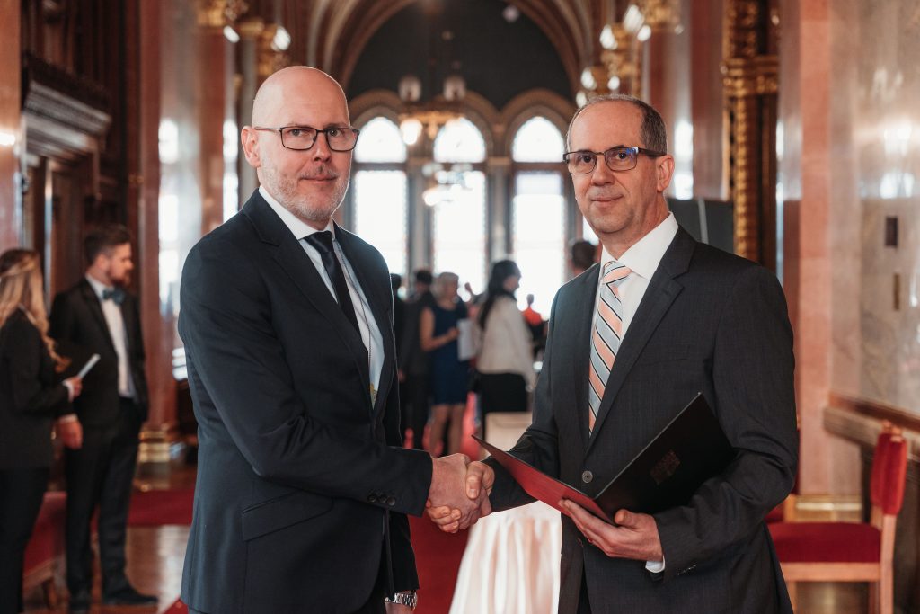 Az eseményen a Széchenyi-egyetem, tudáshasznosító vállalkozása, az Uni Inno Zrt., valamint Digitális Fejlesztési Központja innovációs elismerést vehetett át Bőthe Csabától, a Magyar Innovációs Szövetség ügyvezetőjétől. A kitüntetést a számos nemzetközi kiállításon is díjnyertes környezetbarát permeteződrónnal érdemelték ki, amelyet az ABZ Drone Kft.-vel és a tőkebefektető MIB Invest Group Kft.-vel közösen alapított ABZ Innovation Kft.-n belül alkottak meg.