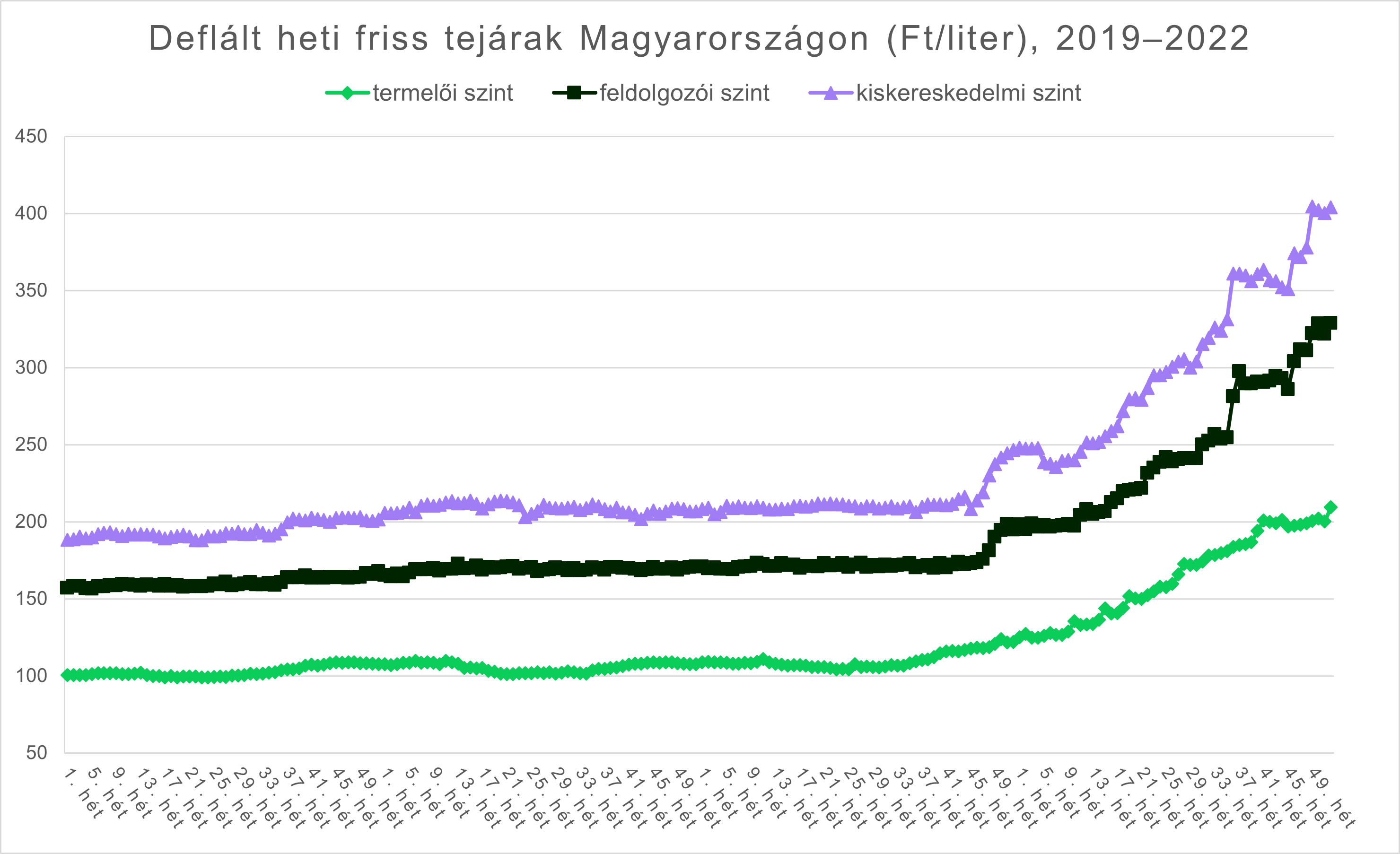 A tanulmány felvázolja: az elmúlt években válságok sora követte egymást: elsőként a Covid19 világjárvány 2020-tól, amelynek következtében a nemzetközi ellátási láncok is megszakadtak, majd a 2021-es energiaválság, a súlyos aszályok és az Ukrajna elleni orosz háború 2022 óta. Magyarországon ez a 2019-2022-es időszak szokatlanul magas inflációt hozott: az élelmiszerek éves drágulása meghaladta a 40%-ot, a tejtermékek inflációja 2022 végén megközelítette a 80%-ot. A szerzők szerint ez az inflációs szint szinte példátlan, ezért is érdekes kérdés, hogy a válságok hogyan hatottak a versenyre a teljes ellátási láncban, és hogyan formálták az árakat a lánc egyes szereplői, nemcsak a termelők és a kereskedők, de a köztes pozíciót betöltő tejfeldolgozók is.