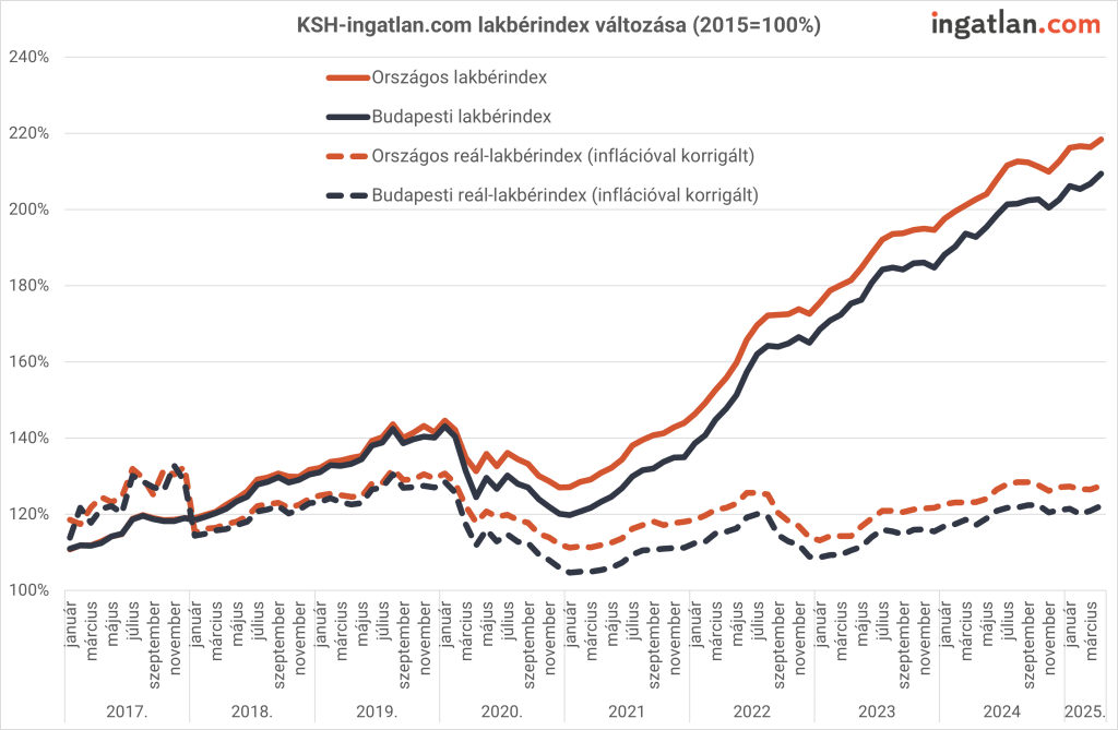 0,9 százalékos bérleti díj emelkedés áprilisban