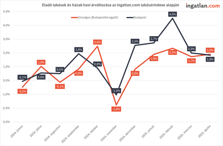 “A budapesti lassulásra a havi adatok utalnak elsősorban. Országosan és a fővárosban is 2 százalék alatti drágulás jellemezte az áprilist, miközben Budapesten az idén 4 százalék feletti áremelkedésre is volt példa január és február között” – értékelte az adatokat Balogh László, az ingatlan.com vezető gazdasági szakértője.