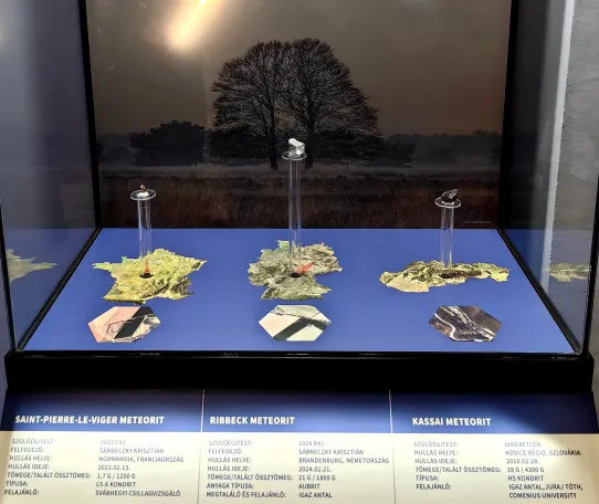 A becsapódott kisbolygókból származó meteoritokat és kőzetszöveteiket most először bárki megnézheti – a páratlan gyűjtemény pedig különleges betekintést nyújt a világűrből érkező anyagokba. A felfedezést végző intézet látogatóközpontjában, a Svábhegyi Csillagvizsgáló Klebelsberg Kunó előadótermében egy újonnan kialakított vitrines kiállítótér mutatja be a három magyar felfedezésű becsapódó kisbolygó közül annak a kettőnek a meteoritjait, amelyek elérték a Földet.