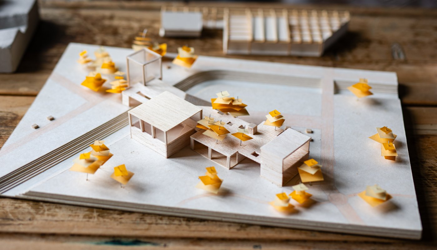 Vasáros Zsolt felhívta a figyelmet, hogy a környezettudatosság az építészetben is megkerülhetetlen témává vált, és a kiállítás alapjául szolgáló kiírás a tanszéken folyó több releváns kutatásból táplálkozik. A tanszékvezető köszöntötte Török Bence építészt, aki 2023-ban védte meg a körforgásos építészetről szóló disszertációját, és a holland DOOR Architecten építészeként nagyban segítette a féléves feladat megalkotását.