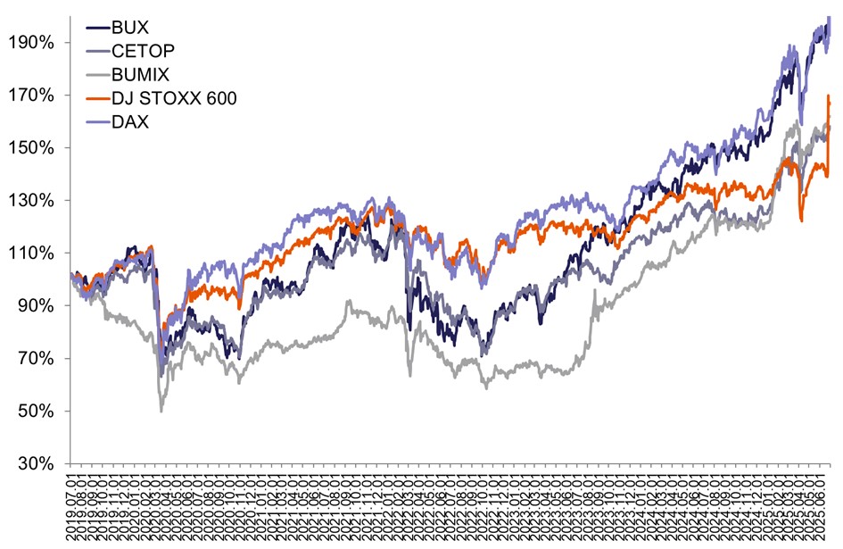 Júniusban pozitív hangulat és a részvényindexek emelkedése jellemezte a globális tőkepiacokat, amit az amerikai gazdaság erős teljesítménye és a mérséklődő kereskedelmi viták is elősegítettek. Ugyanakkor a geopolitikai kockázatok, különösen a Hormuzi-szoros körüli konfliktushelyzet, valamint az emelkedő olajárak bizonytalanságot keltettek a befektetői hangulatban. A hónap során a Budapesti Értéktőzsde a régió egyik legjobban teljesítő tőzsdéjének bizonyult, amit a BUX index többszöri történelmi csúcsa is megerősített.