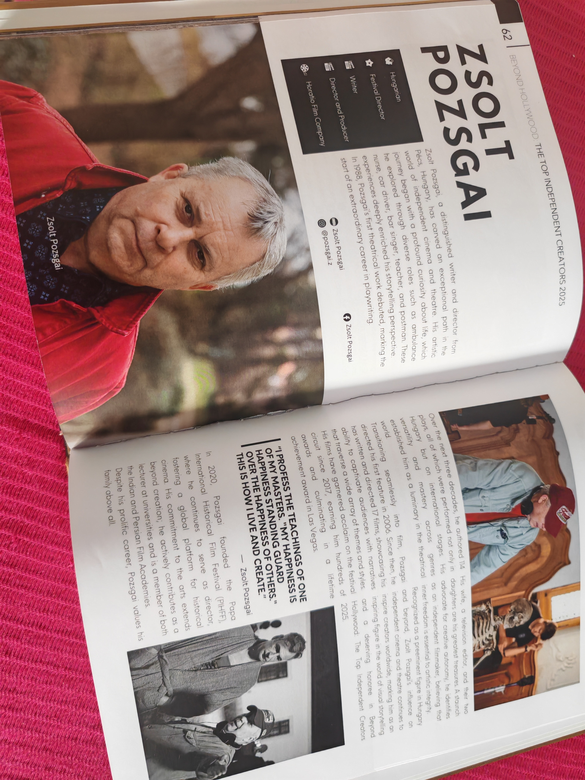 A Los Angelesben megjelenő FILMMAKERSLIFE MAGAZIN minden évben kiválasztja a világ legsikeresebb független filmeseit. Az idei, 2025-ös könyvbe Pozsgai Zsolt magyar író és rendező is bekerült.