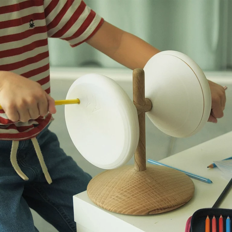 A Spinny – Kőszeghy Anna munkája – egyszerre ceruzahegyező és fejlesztőeszköz, amely játékos módon segíti a két agyfélteke koordinációját. Miközben a tárgy támogatja a finommotorikus és idegrendszeri fejlődést, a figyelemzavaros és tanulási nehézségekkel küzdő gyermekek növekvő számára is reflektál.