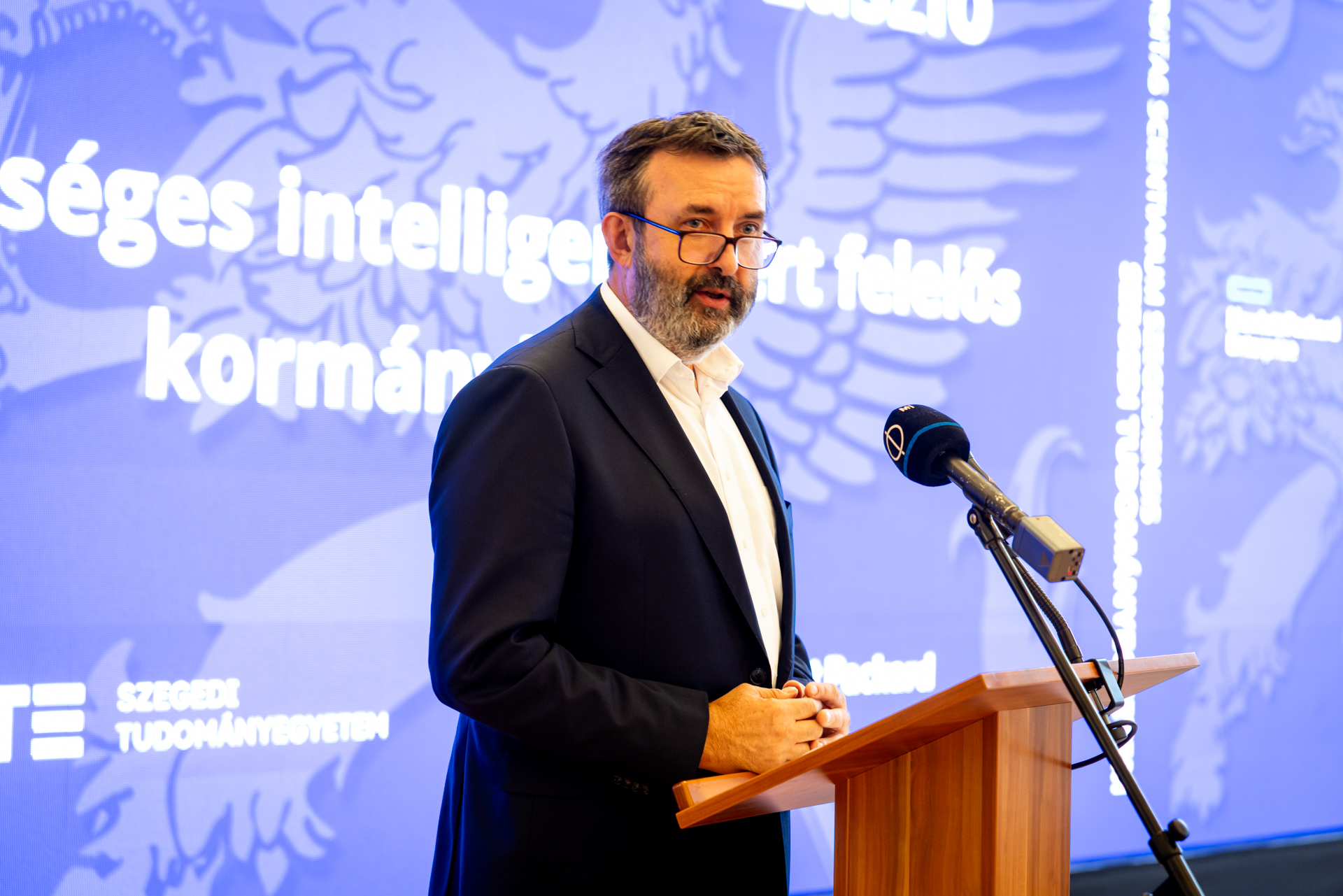 Dr. Fendler Judit, az SZTE kancellárja az eseményen bemutatta a Szegedi Tudományegyetem Interdiszciplináris Kutatásfejlesztési és Innovációs Kiválósági Központjában összefogott kiemelt kapacitásait. Az IKIKK élettudományi klaszterében olyan kiemelt kapacitások vannak, mint az SZTE Biobankja, a Szekvenáló Központi Laboratórium, a természettudományi klaszterében pedig a MOL Elválasztástechnológiai Labor vagy az Anyagtudományi Műszerközpont. E projektek MI-támogatásához alapította meg az SZTE IKIKK Prof. Dr. Jelasity Márk vezetésével a Mesterséges Intelligencia Kompetenciaközpontot, amely önálló kiemelt kapacitásként a kutatás adatfeldolgozási, modellezési munkáját segíti majd.
