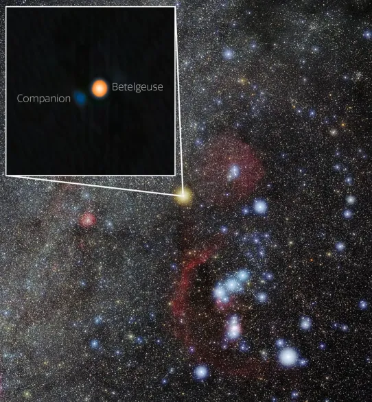 A Betelgeuze csillag, az Orion csillagkép bal vállát jelző vörös szuperóriás, régóta áll a megfigyelések kereszttüzében, különösen a néhány éve történt jelentős halványodási epizód óta. A Betelgeuze hatéves fényváltozása sokáig rejtély volt, de 2024-ben két független kutatócsoport arra a következtetésre jutott, hogy azt egy közeli kísérőcsillag okozhatja.