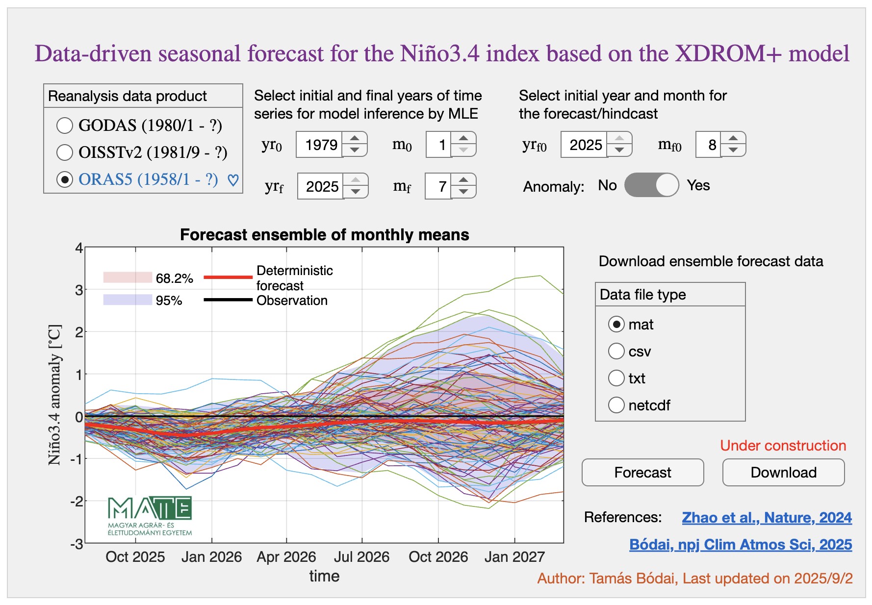 A MATE kutatója a szezonális előrejelző rendszerek fejlesztését a norvégiai Bergenben található Bjerknes Klímakutató Központban, Noel Sebastian Keenlyside professzor és Dr. Pratik Kad vendégeként is folytatta. Adam Scaife, a UK Met Office szezonális előrejelzésekért felelős vezetőjének meglátása szerint „az új rendszer magas előrejelző ereje az indiai monszun tekintetében egy figyelemreméltó fejlemény”. A kutatás és a szolgáltatásfejlesztés a HUN-REN Cloud erőforrások segítségével és a Pannónia Mobilitási Program továbbá a MATE Kutatói Kiválóság Programjának támogatásával valósulhat meg.