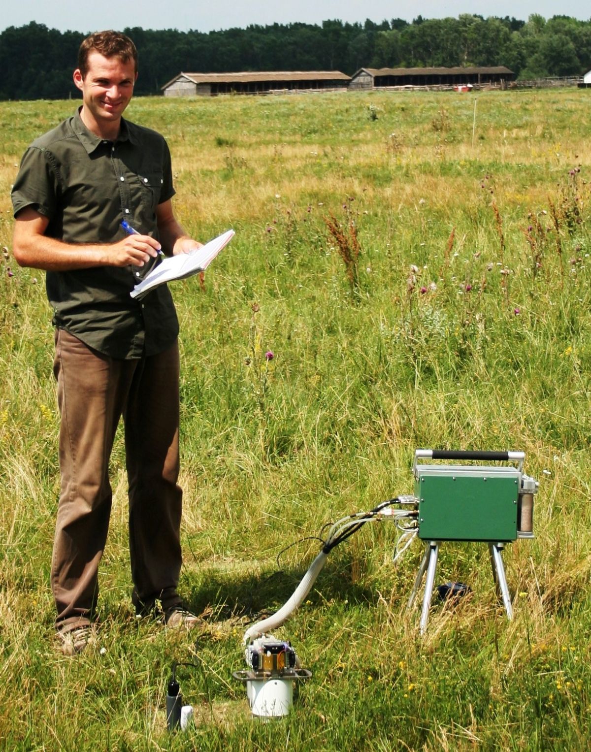 A MATE és az Ökológiai Kutatóközpont kutatóinak részvételével végzett kutatásban egy kiskunsági száraz legelő működését vizsgáltuk, ezen belül is elsősorban a fotoszintézis során felvett és a talajon keresztül leadott CO2 kapcsolatát. Arra voltunk kíváncsiak, melyik az a szénforrás, ami elsődlegesen meghatározza a talajból leadott szén mennyiségét, a talaj szervesanyagtartalmában tárolt, vagy a növények által “frissen” felvett CO2? 2012-2020 között összesen 23 alkalommal történtek mérések 78 állandó ponton. A terület különlegessége – amellett, hogy a Kiskunsági Nemzeti Park fokozottan védett része – hogy 2002 óta működik itt egy olyan mérőállomás (örvény-kovariancia mérőállomás), amely a felszín és az atmoszféra között zajló CO2 és vízgőz áramokat méri, így alkalmas a fotoszintézis révén felvett szénmennyiség mérésére.