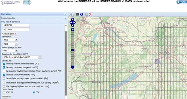 A FORESEE a régió alapvető meteorológiai változóit – többek között a maximum- és minimum-hőmérsékletet, a csapadékot és a Napból származó besugárzást – teszi elérhetővé bárki számára.